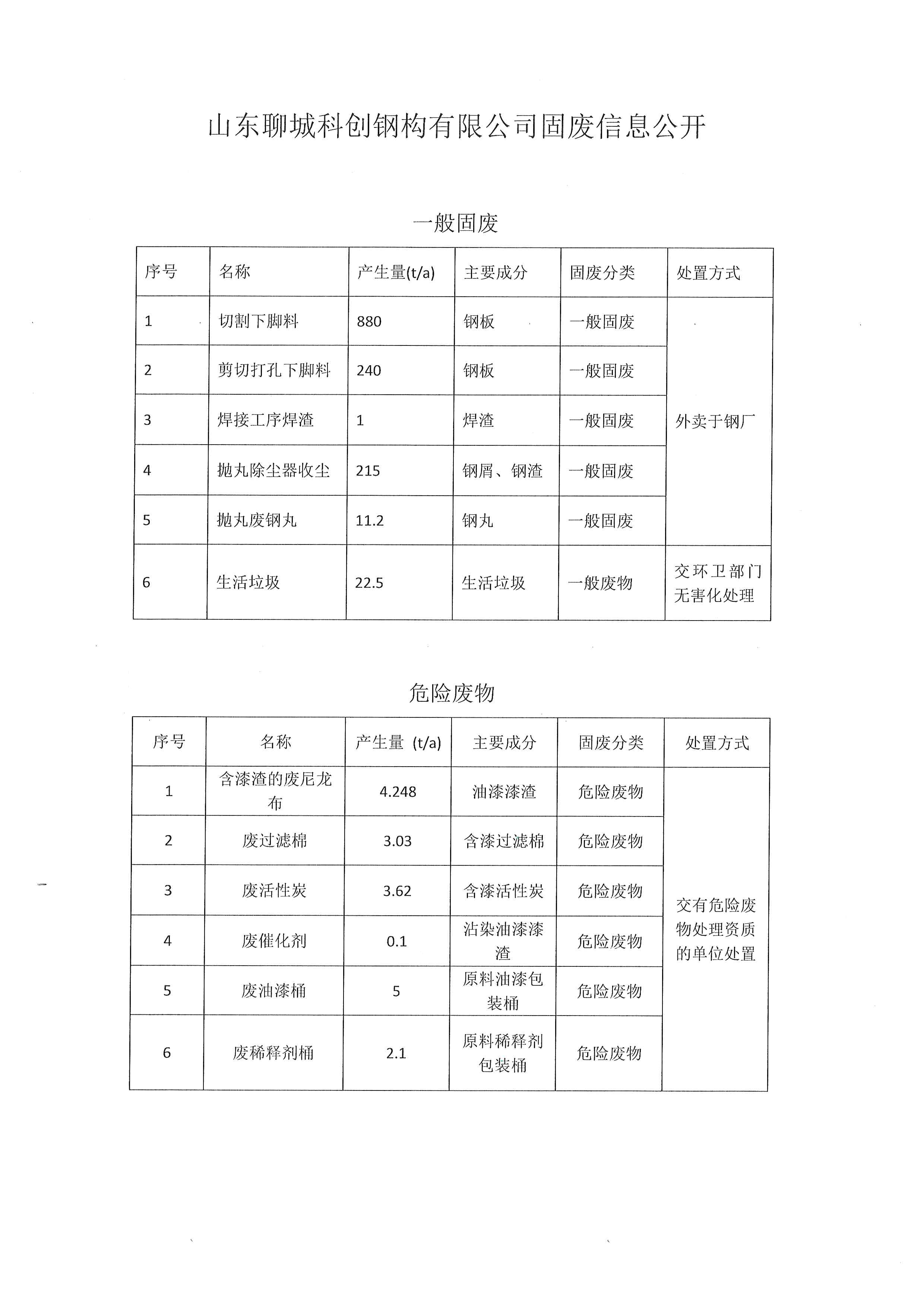 【概要描述】山東聊城科創(chuàng)鋼構(gòu)有限公司固廢信息公開